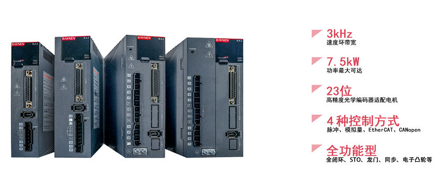 RA3系列全功能型伺服驅(qū)動(dòng)器是睿能科技依托第三代研發(fā)技術(shù)平臺(tái)打造的全新伺服產(chǎn)品,具備高精度、高響應(yīng)、高防護(hù)等特點(diǎn),廣泛適用于機(jī)器人、鋰電、電子設(shè)備、紡織、包裝、機(jī)床和木工等行業(yè),顯著提高機(jī)械設(shè)備生產(chǎn)效率。